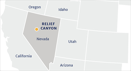 Royal Gold holds a 2.0% net smelter return (NSR) royalty on all metals produced from Relief Canyon. Royal Gold’s royalty interest covers approximately 69% of the resource footprint by area.