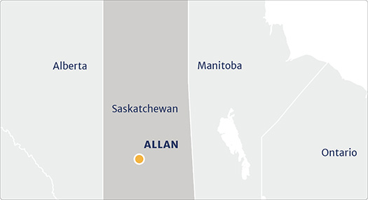 Allan is an underground potash mine owned and operated by Nutrien Ltd. (“Nutrien”). Allan is located in central Saskatchewan, approximately 45 kilometers east of Saskatoon near the town of Allan.