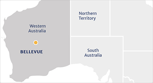 Bellevue is an underground gold project owned by Golden Spur Resources Pty Ltd., a wholly-owned subsidiary of Bellevue Gold Limited (“Bellevue Gold”). Bellevue is located in Northeastern Goldfields, Western Australia, approximately 430 kilometers north of Kalgoorlie and 160 kilometers north of Leonora.