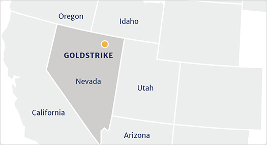 Goldstrike is an open-pit and underground operation, held within the Barrick-operated Nevada Gold Mines LLC, a joint venture between Barrick Gold Corporation (“Barrick”) (61.5%) and Newmont Corporation (38.5%). Goldstrike is located within the northern Carlin Trend in Eureka and Elko Counties, Nevada, approximately 50 kilometers northwest of the town of Elko. The Carlin Trend is an alignment of gold mines located in a northwest-southeast belt extending 8 kilometers wide and 65 kilometers long, which accounts for more gold production than any other mining district in the United States.