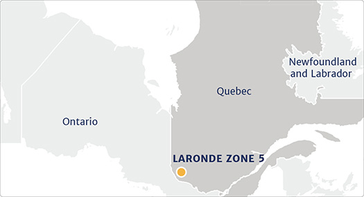 LaRonde Zone 5 (“LZ5”) is an underground mine, owned and operated by Agnico Eagle Mines Limited (“Agnico Eagle”). LZ5 is located on the Bousquet property, immediately west of the LaRonde mine complex, in the Rouyn-Noranda mining district, northwestern Quebec, Canada.