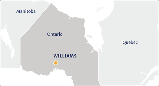Williams is an underground and open-pit gold mining operation, owned and operated by Barrick Mining Corporation (“Barrick”). Williams is located in northwestern Ontario, Canada, approximately 350 kilometers east of the city of Thunder Bay. Williams is part of Barrick’s larger Hemlo operation.